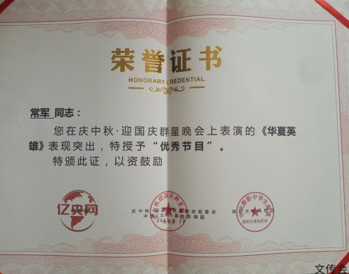 常军1995年参加第三届中国永年国际太极拳联谊会武术比赛,获太极棍金牌;同年参加河北省第四届少数民族体育运动会武术比赛获拳术、器械对练两枚铜牌。1997年创办邢台陈固安太极拳研究社任社长兼总教练。1998年参加河北省第五届少数民族体育运动会武术比赛,获九节鞭金牌。2001年由河北兴泰发电有限公司聘为老年大学太极拳专业讲师。2002年被河北经贸大学学生会聘为武术总指导、武派太极拳教授。2002年至今被河北医科大学中医学院聘为武术总教练,被河北永年郝为真太极拳学术研究会聘为顾问。2005年参加河北省武术太极拳(剑)锦标赛获传统太极器械(棍)一等奖。2006年参加河北省“裕华杯”武术太极拳锦标赛获传统太极拳械(棍)一等奖。2014年应邀参加中华武术研习会首届民间武术家文化交流大会,并荣获“特殊贡献奖”证书。2015年获得由中国武术世界运动协会、中国武术网颁发的“中华武术百杰”证书,并载入《中国当代武林人物志》一书。2017年参加河北省第三届名拳名师展演赛获一等奖,并获得燕赵“武豪”称号!