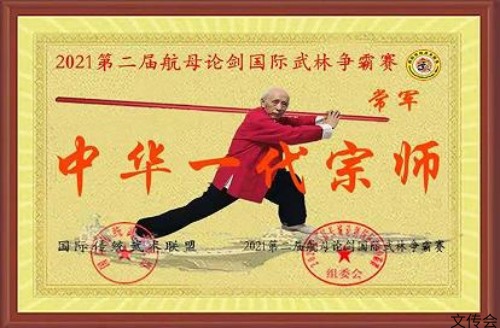 2020年末被国际传统武术联盟评选为2021年国际传统林争霸赛形象大使,并授予“太极第一棍”称号,颁发“中华一代宗师”荣誉牌匾,以资鼓励!