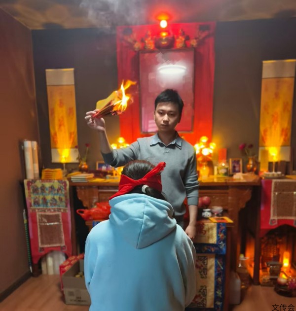 董铭泽老师给信士施法观灵中的“放毫光”环节